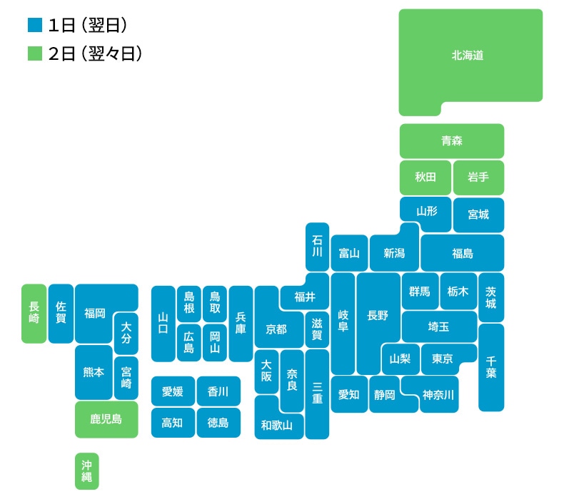 地域別のお届け日目安は下図よりご確認ください。