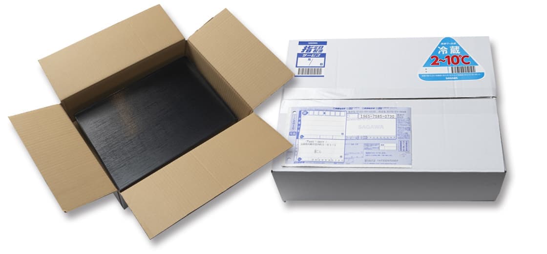 冷蔵便、冷凍便共にこちらの梱包でお届けいたします。