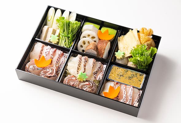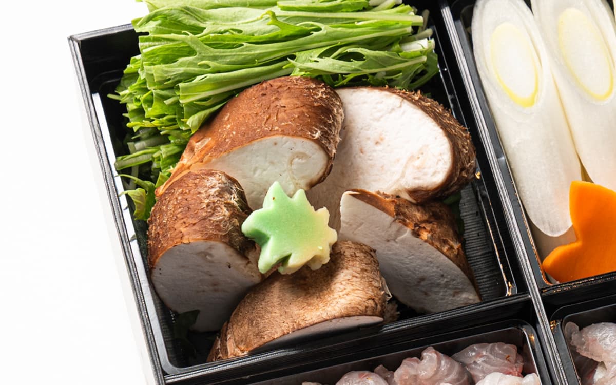 特製の真名麩や花麩も加わり、鍋全体を華やかに演出。見た目にも、味わいにも、季節の移ろいを感じていただけます。